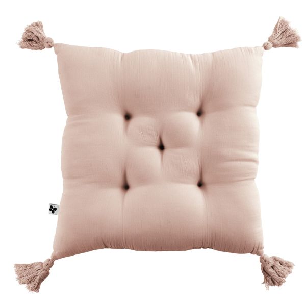 Coussins 100% gaze de coton 40x40 cm Rose clair finition : Piquage capiton - 4 pompons...