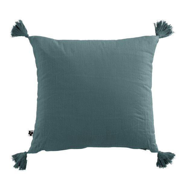 Coussins 100% gaze de coton 40x40 cm Bleu finition : 4 pompons, Zip...