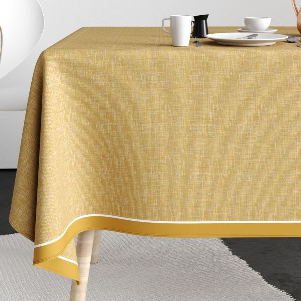 Housse De Rêve, sublimez votre table avec la Nappe 100% coton 180gr/m2 Jaune 140x300 cm Des nappes unies ou à motifs pour une table élégante et facile à nettoyer.Fabriquée en 100% coton 180gr/m2 de haute qualité avec de la fibre sélectionnée.Nappe avec traitement déperlant antitache pour une résiste aux tâches et aux déversements. Avec son design épuré et sa finition ourlet, notre nappe s’adaptera à tous les styles de décoration de table. C’est l’accessoire indispensable dans votre quotidien et pour toutes occasions. Le traitement déperlant antitache apporte une protection efficace et durable tout en préservant un toucher doux. Dès que le besoin s’en fait ressentir, nettoyer à l’aide d’une éponge humidifiée avec de l’eau très chaude et laisser la nappe en coton sécher à l’air libre. Lavage à 30°C avec peu de lessive, sans essorage ni adoucissant. Entretien facile. Repassage obligatoire sur l'envers en position coton ou sur l'endroit avec une patte-mouille.Produit Oeko-Tex Taille : 140x300cm
