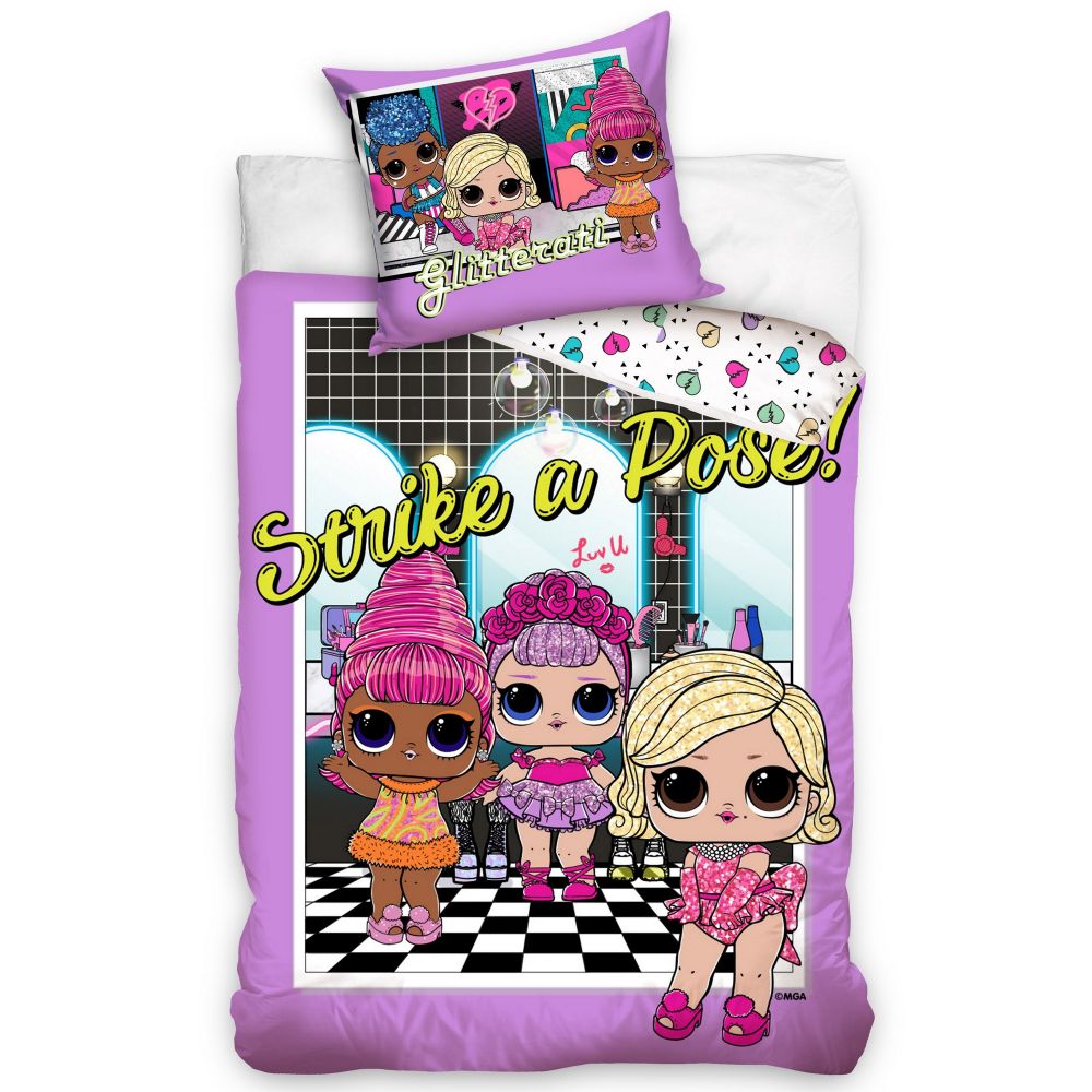 Parure de lit LOL Surprise Glitterati 100% coton comprenant : 1 housse de couette 140x200 cm et 1 taie d'oreiller 65x65 cm...