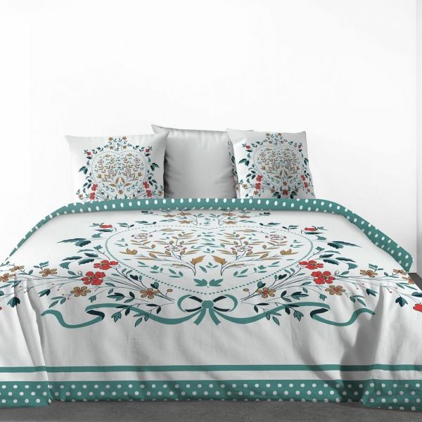 Parure de lit 3 pièces 100% Coton 47 fils à Motifs 240x260 cm comprenant : 1 housse de couette 240x260 cm + 2 taies d'oreiller 63x63 cm...