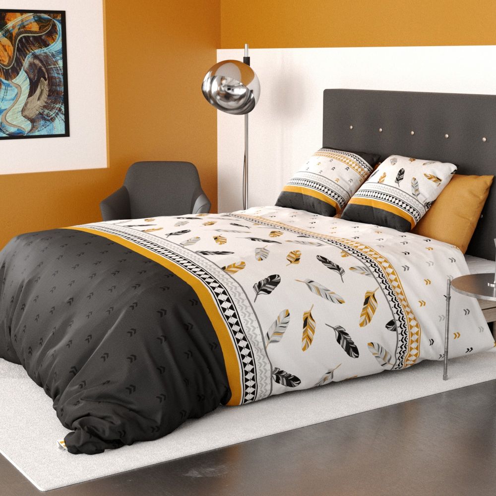 Parure de lit 3 pièces Coton à motifs 200x200 cm comprenant : 1 housse de couette 200x200 cm + 2 taies d'oreiller 63x63 cm...
