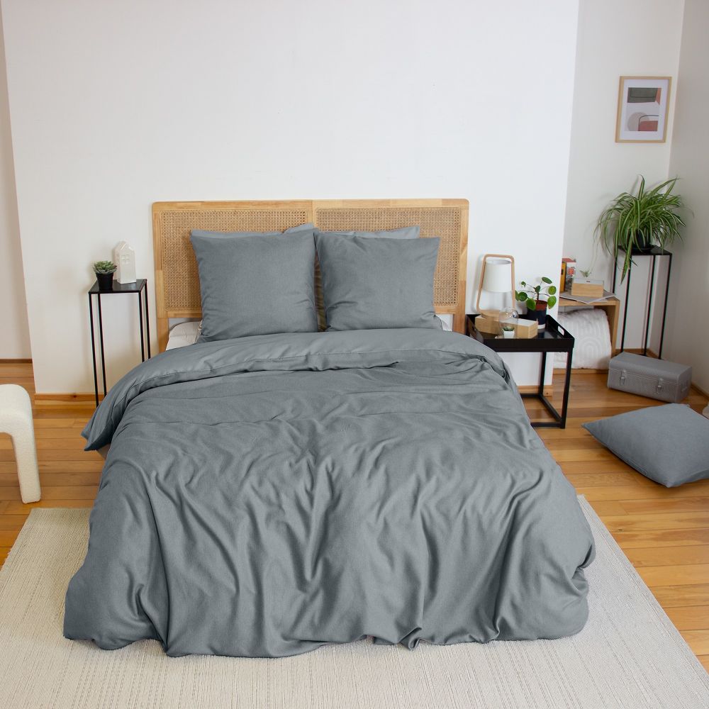 Parure de lit Microfibre uni 220x240 cm comprenant : 1 housse de couette 240x220 cm + 2 taies d'oreiller 63x63 cm...