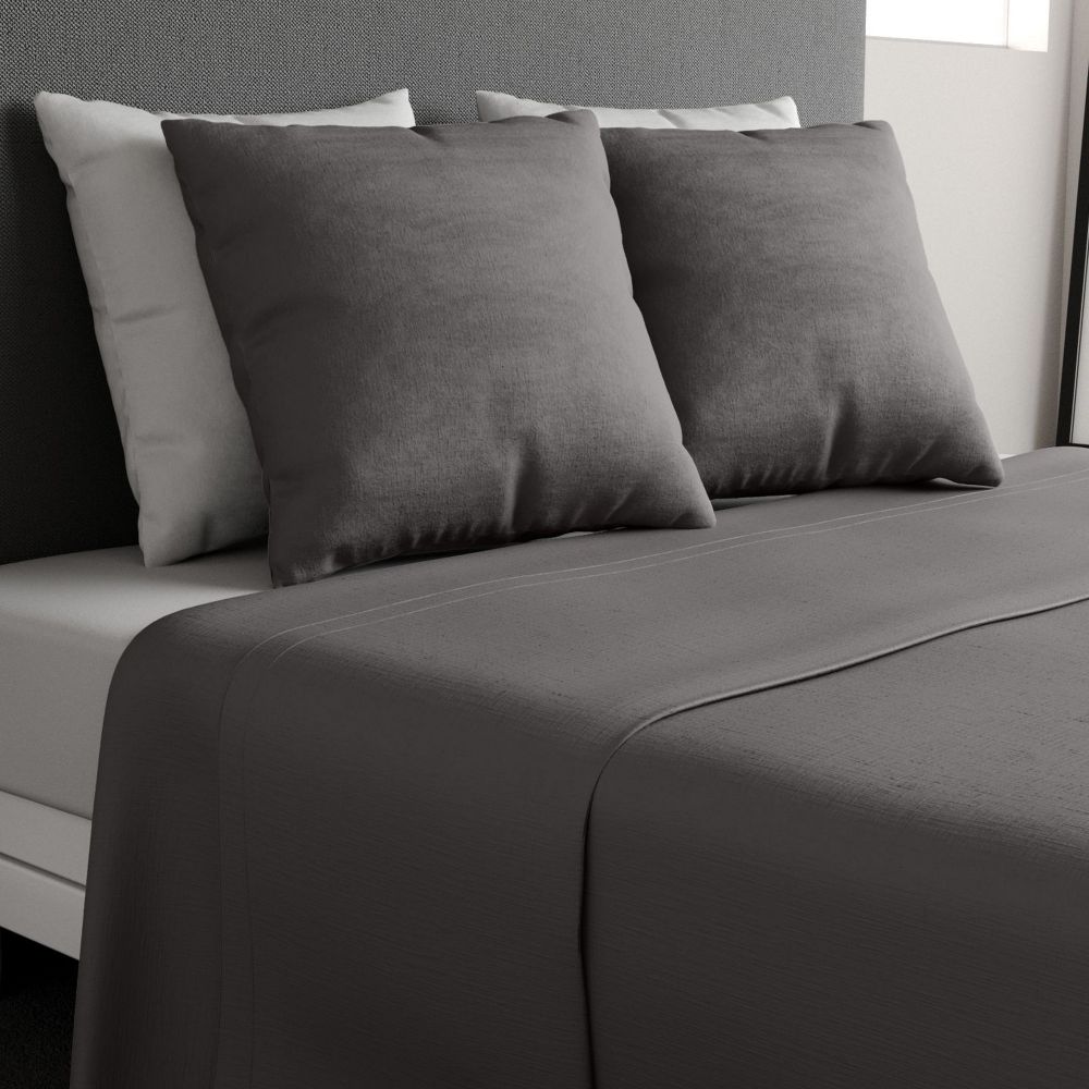 Parure de drap plat 2 pièces 180x290 cm 100% Coton 57 fils Gris Fonce comprenant 1 drap plat 180x290 cm + 1 taie d'oreiller 63x63 cm...