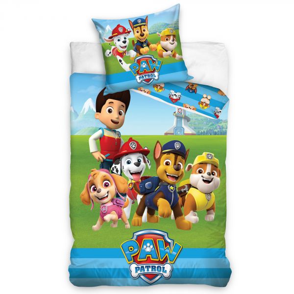 Parure housse de couette Pat' Patrouille Team 2 100% coton comprenant : 1 housse de couette 140x200 cm et 1 taie d'oreiller 65x65 cm.