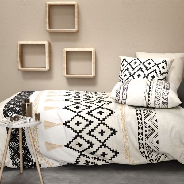 Parure de couette 100% Coton 57 fils Bohème. Parure de lit Coton Bohème comprenant : housse de couette et taie d'oreiller 63 x 63 cm . Disponible en plusieurs tailles...