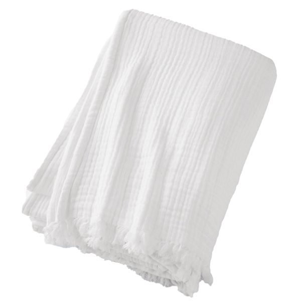 Plaid 100% gaze de coton 180x220 cm Blanc finition : Petites franges...