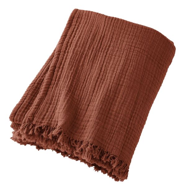 Plaid 100% gaze de coton 130x160 cm Orange finition : Petites franges...