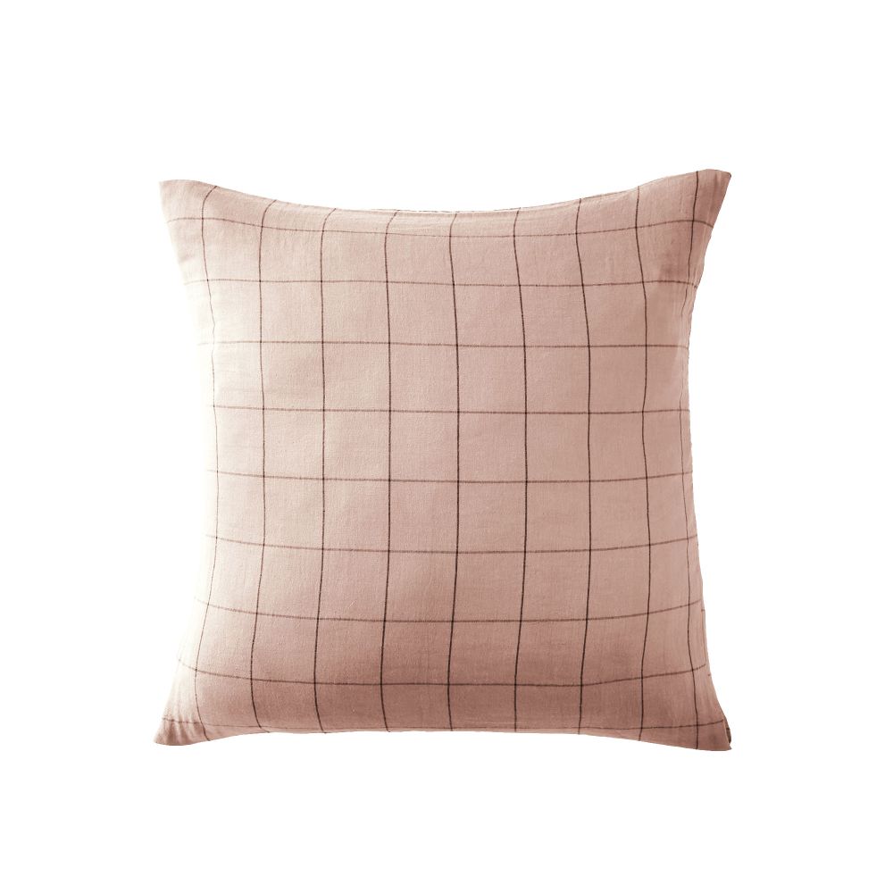 Taie d oreiller 100% gaze de coton 60x60 cm Rose clair finition : Ouverture portefeuille avec rabat - Grands carreaux...