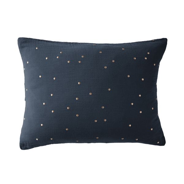 Taie d oreiller 100% gaze de coton 50x70 cm Bleu foncé finition : Ouverture portefeuille avec rabat - Poids brodés...